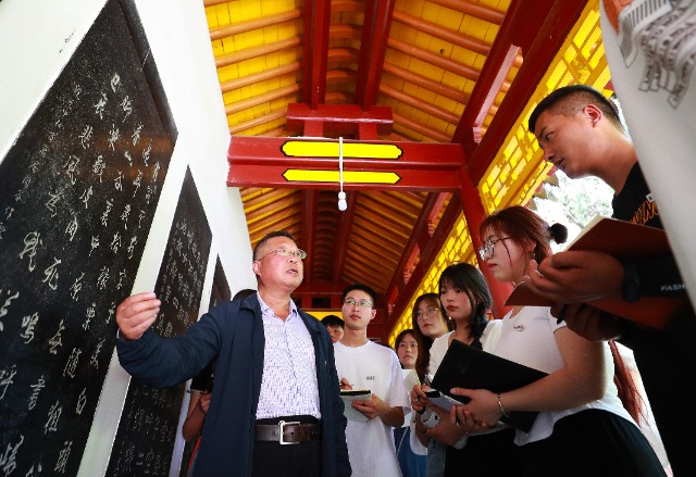 每一塊碑文都是一段歷史,溫虎林教授不僅講碑文的內(nèi)容,也給學生講書法蘊意。