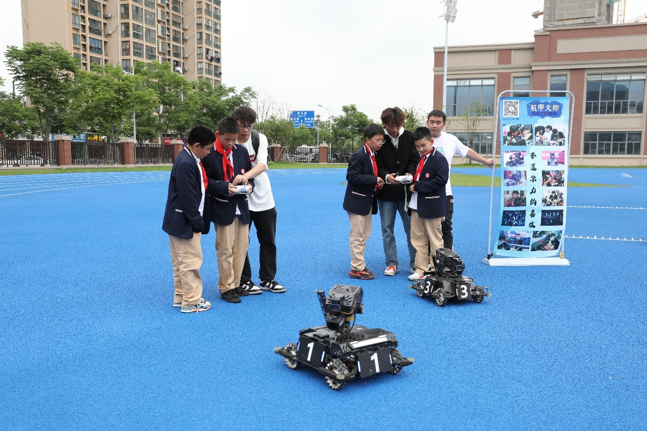 在操場(chǎng)上,來(lái)自上海工程技術(shù)大學(xué)和上海工藝美術(shù)職業(yè)學(xué)院的同學(xué)們,通過(guò)機(jī)器人展示、航模隊(duì)表演、世界技能大賽小講堂、手工皮具制作以及琺瑯版畫展示等向中學(xué)生們傳遞著“技能讓生活更美好”的新時(shí)代職業(yè)教育發(fā)展理念。