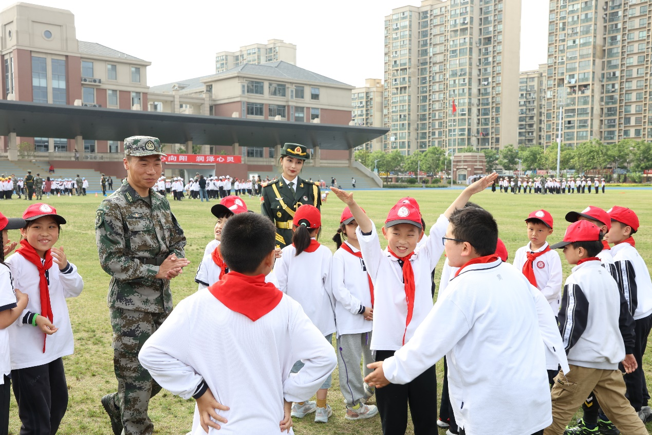 退伍軍人來(lái)到小學(xué)生身邊。學(xué)校供圖
