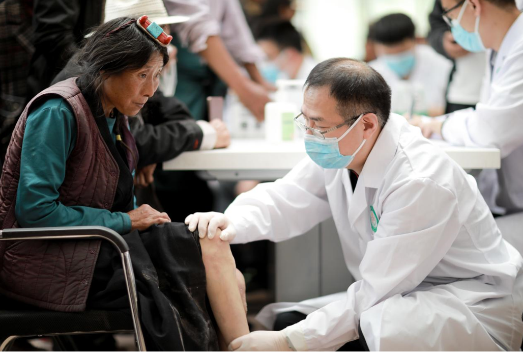 重醫(yī)附一院骨科主任黃偉在昌都市芒康縣髖膝關(guān)節(jié)疾病貧困患者進(jìn)行免費復(fù)篩及手術(shù)。學(xué)校供圖