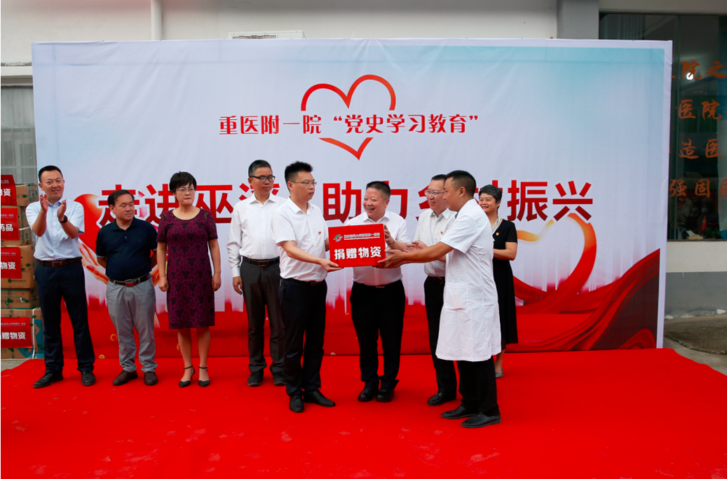 2021年,重醫(yī)附一院黨委書記許平向巫溪縣通城鎮(zhèn)衛(wèi)生院捐贈藥品和醫(yī)療耗材。學(xué)校供圖