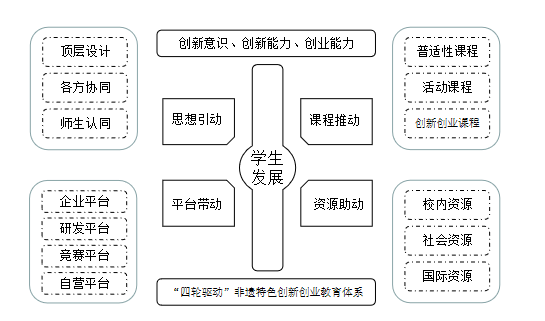 圖1 “四輪驅(qū)動(dòng)”非遺特色創(chuàng)新創(chuàng)業(yè)教育體系