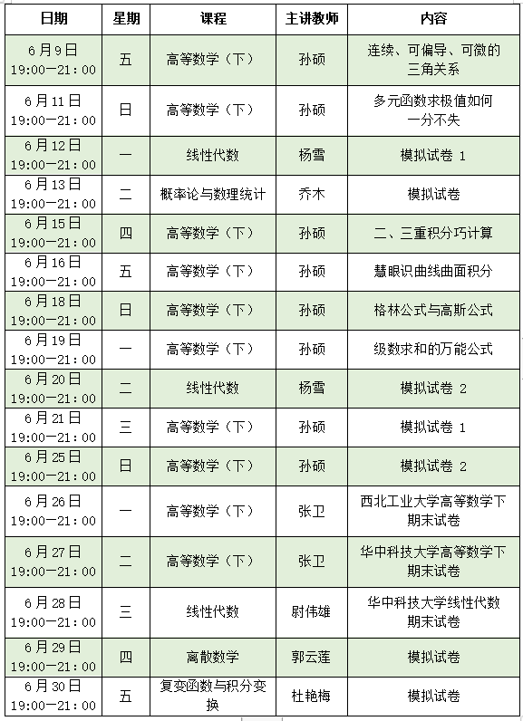 中國(guó)教育新聞網(wǎng)訊(記者 焦小新)期末考試要來了,高等教育出版社為同學(xué)們送來高等數(shù)學(xué)不掛科的好方法!高等教育出版社出品的“高等數(shù)學(xué)(下)伴學(xué)計(jì)劃”之高等數(shù)學(xué)(下)期末考試專項(xiàng)輔導(dǎo),將于6月9日晚7點(diǎn)上線。本學(xué)期共十六期精講,伴隨你整個(gè)六月,還擔(dān)心什么?跟緊直播,一起輕松取得好成績(jī)。