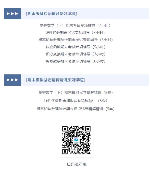 高等數(shù)學(xué)(下)期末專項(xiàng)輔導(dǎo),對(duì)期末高數(shù)、線代等考試重難點(diǎn)進(jìn)行復(fù)習(xí)與強(qiáng)化,在結(jié)合模擬試卷講授實(shí)用技巧的同時(shí),精講西北工業(yè)大學(xué)、華中科技大學(xué)的期末真題,幫助同學(xué)們總結(jié)期末高頻考點(diǎn),提升應(yīng)試能力。