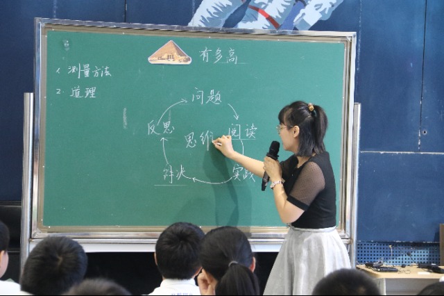 北航附小教師范穎杰與學(xué)生帶來題為“金字塔有多高”的多元閱讀現(xiàn)場課 學(xué)校供圖