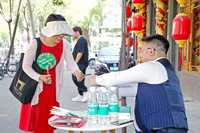 6月7日,北京鏈家經(jīng)紀(jì)人為考生家長(zhǎng)送上消暑物資和祝福書簽