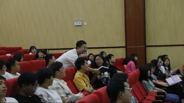 現(xiàn)場(chǎng)互動(dòng)的學(xué)生接受高等教育出版社贈(zèng)送的學(xué)習(xí)資料