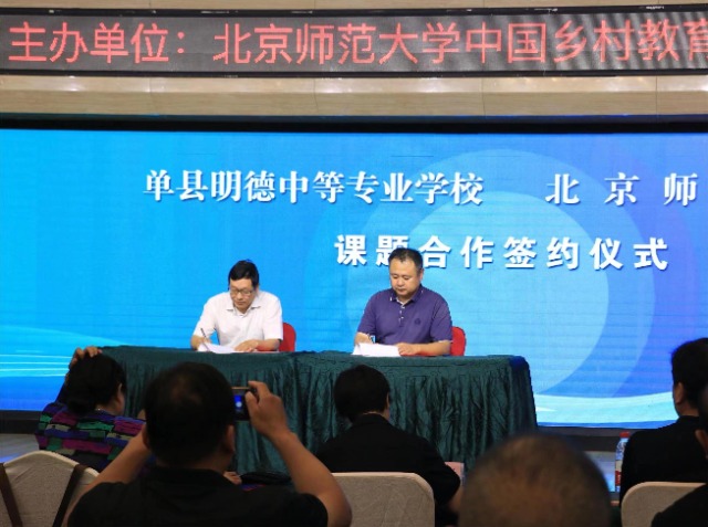 北京師范大學(xué)與單縣明德職業(yè)中等專業(yè)學(xué)校舉行課題合作簽約儀式。主辦方供圖