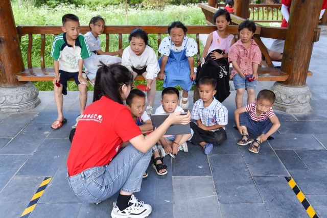 中國教育報-中國教育新聞網(wǎng)訊(通訊員 謝炎伶 向思佳 記者 楊三喜)“甲骨文是漢字的源頭和中華優(yōu)秀傳統(tǒng)文化的根脈,值得倍加珍視、更好傳承發(fā)展?!?月8日上午,衡陽師范學(xué)院“星火筑夢”鄉(xiāng)村振興實踐團的志愿者在邵陽市城步苗族自治縣大寨村的標志性建筑——侗族長廊里,給當(dāng)?shù)氐暮⒆觽兩狭艘惶锰厥獾恼Z文課。