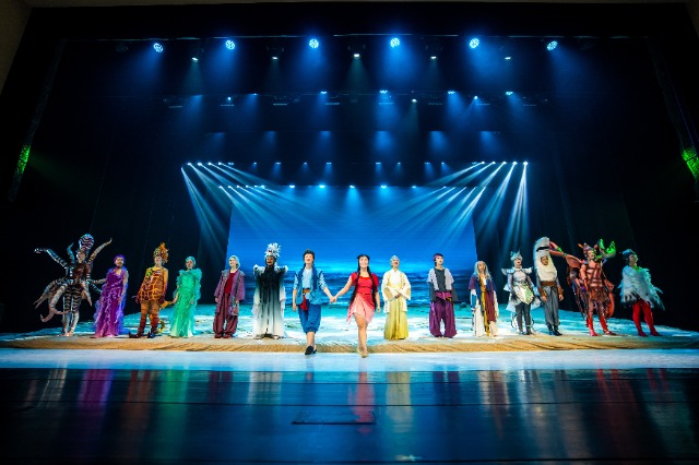 《東海人魚》是中國經(jīng)典兒童劇目,由中國兒童藝術(shù)劇院在20世紀(jì)七八十年代根據(jù)中國傳統(tǒng)民間故事改編而成,講述了漁村少年金珠子解救人魚姑娘的動人故事。美國版《東海人魚》在原劇目基礎(chǔ)上,對中文臺詞和舞臺表演進(jìn)行了改編,演員全程用中文表演,將芭蕾、歌舞劇等西方表演形式有機(jī)融合,配合高科技的表現(xiàn)手段和舞美設(shè)計(jì)。