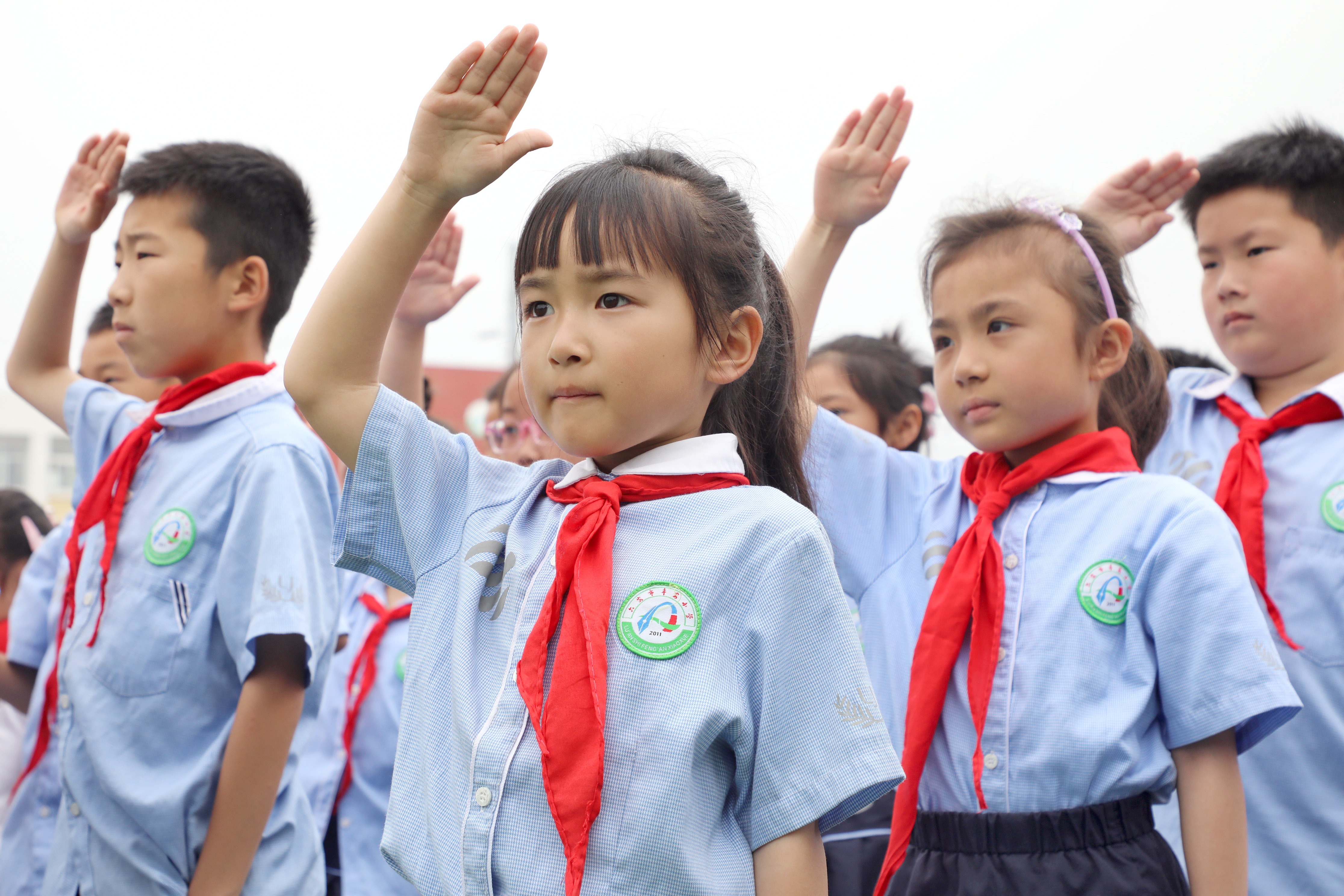 安徽省六安市金安區(qū)豐安小學(xué)舉行少先隊(duì)員入隊(duì)儀式,引導(dǎo)青少年樹立遠(yuǎn)大理想,爭做強(qiáng)國復(fù)興有我的追夢人。田凱平 攝