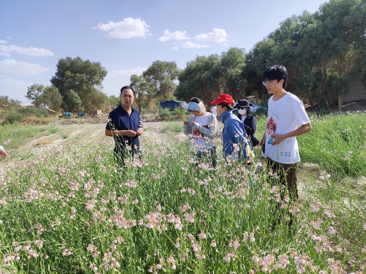 援疆團(tuán)成員走訪羅布麻生產(chǎn)基地。學(xué)校供圖