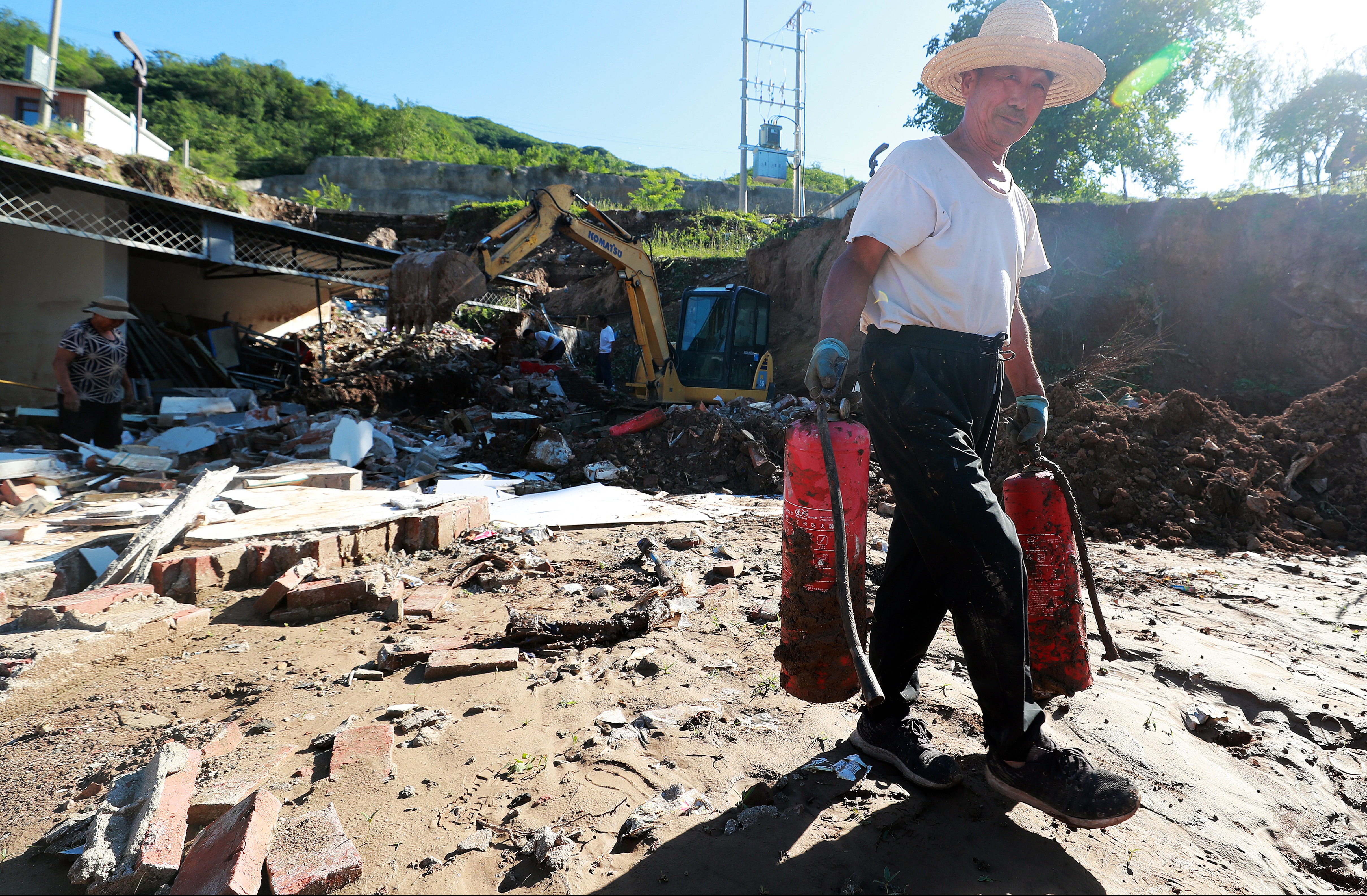8月22日,河北省淶水縣三坡學(xué)區(qū)紫石口小學(xué)清理水毀校園。