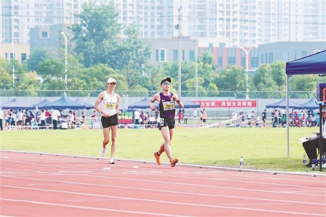 江西師范大學(xué)魯寧在男子丁組10000米競走獲得大田賽首金