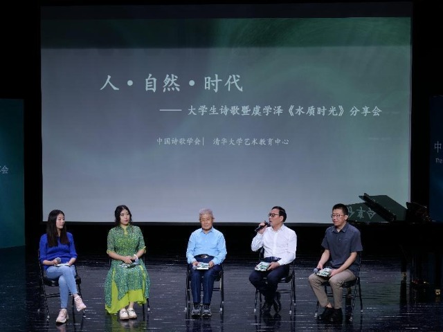 9月9日,由中國詩歌學(xué)會、清華大學(xué)藝術(shù)教育中心主辦的“現(xiàn)象與趨勢——當(dāng)代中國詩歌發(fā)展研討會”和“人·自然·時代”——大學(xué)生詩歌暨虞學(xué)澤《水質(zhì)時光》分享會在清華大學(xué)舉行。詩人虞學(xué)澤攜新作《水質(zhì)時光》走進(jìn)清華園,與專家學(xué)者、高校師生分享詩歌創(chuàng)作心得。