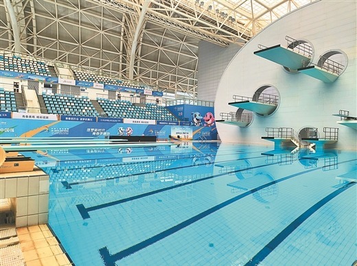 9月29日,記者在廣西體育中心游泳跳水館看到,跳水池已經(jīng)注滿水,學青會的會徽、吉祥物,以及宣傳口號標語貼紙隨處可見,賽事氛圍濃厚。該場館已經(jīng)全面升級改造,目前各項準備工作進入收尾階段,改造升級后,跳水池水質、場地的環(huán)境已經(jīng)達到了國際比賽的標準。10月7—9日學青會跳水比賽測試賽將在此舉行。