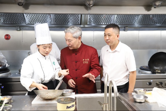 釣魚臺國賓館原行政總廚、國宴烹飪大師孫永河指導(dǎo)學(xué)生實訓(xùn)。學(xué)校供圖