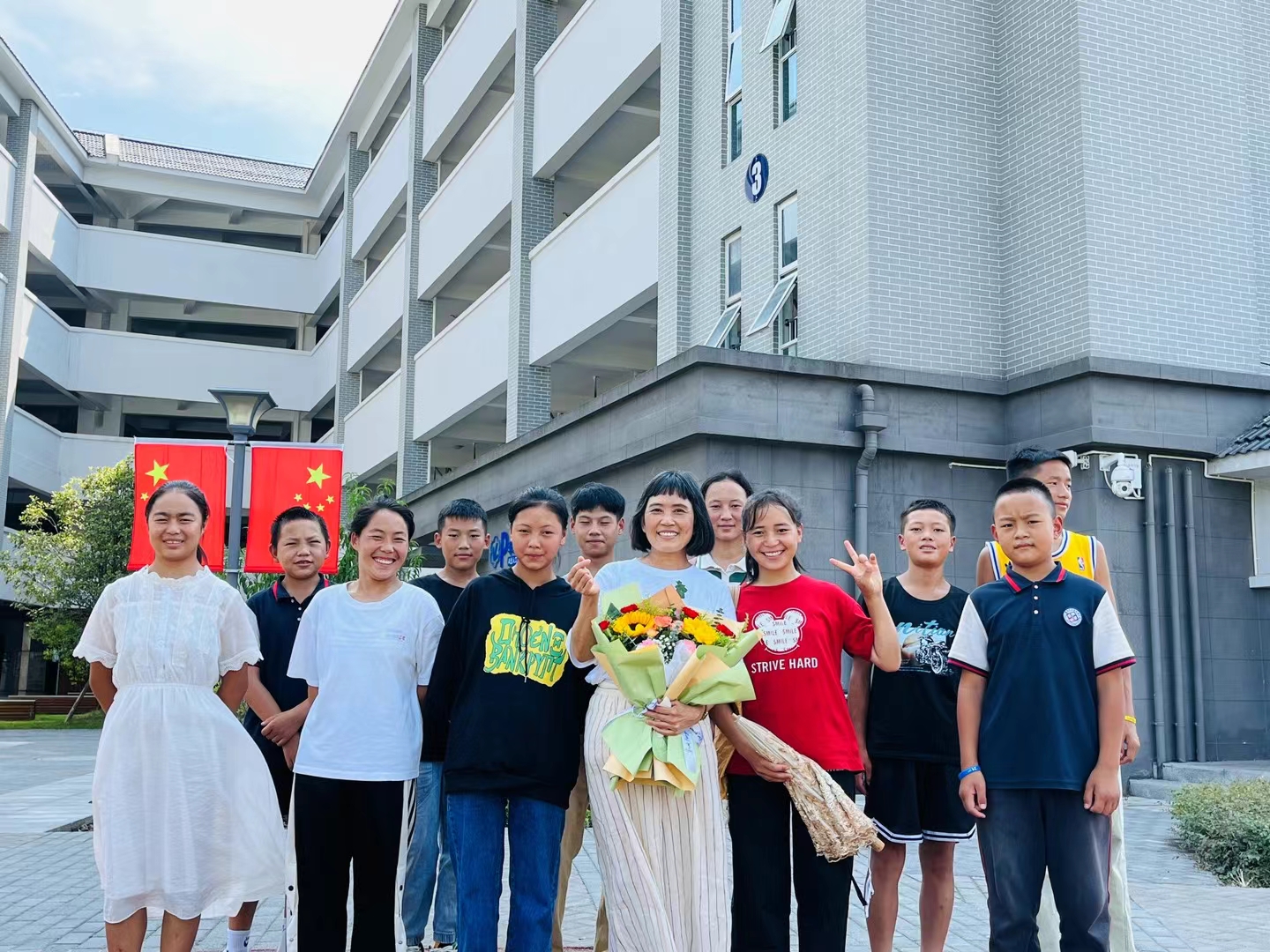 去年我在學(xué)校與國旗合影,
