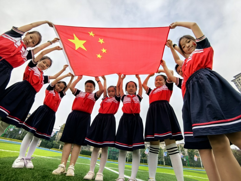 國慶假期,安慶市華中路第三小學(xué)的孩子們在校園里開展“我與國旗合個影,爭做新時代好少年”文明實(shí)踐活動。