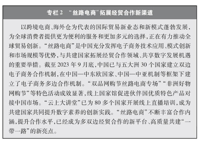 “數(shù)字絲綢之路”建設(shè)亮點(diǎn)紛呈。共建國家加強(qiáng)數(shù)字領(lǐng)域的規(guī)則標(biāo)準(zhǔn)聯(lián)通,推動區(qū)域性數(shù)字政策協(xié)調(diào),攜手打造開放、公平、公正、非歧視的數(shù)字發(fā)展環(huán)境。截至2022年底,中國已與17個國家簽署“數(shù)字絲綢之路”合作諒解備忘錄,與30個國家簽署電子商務(wù)合作諒解備忘錄,與18個國家和地區(qū)簽署《關(guān)于加強(qiáng)數(shù)字經(jīng)濟(jì)領(lǐng)域投資合作的諒解備忘錄》,提出并推動達(dá)成《全球數(shù)據(jù)安全倡議》《“一帶一路”數(shù)字經(jīng)濟(jì)國際合作倡議》《中國-東盟關(guān)于建立數(shù)字經(jīng)濟(jì)合作伙伴關(guān)系的倡議》《中阿數(shù)據(jù)安全合作倡議》《“中國+中亞五國”數(shù)據(jù)安全合作倡議》《金磚國家數(shù)字經(jīng)濟(jì)伙伴關(guān)系框架》等合作倡議,牽頭制定《跨境電商標(biāo)準(zhǔn)框架》。積極推進(jìn)數(shù)字基礎(chǔ)設(shè)施互聯(lián)互通,加快建設(shè)數(shù)字交通走廊,多條國際海底光纜建設(shè)取得積極進(jìn)展,構(gòu)建起130套跨境陸纜系統(tǒng),廣泛建設(shè)5G基站、數(shù)據(jù)中心、云計算中心、智慧城市等,對傳統(tǒng)基礎(chǔ)設(shè)施如港口、鐵路、道路、能源、水利等進(jìn)行數(shù)字化升級改造,“中國-東盟信息港”、“數(shù)字化中歐班列”、中阿網(wǎng)上絲綢之路等重點(diǎn)項目全面推進(jìn),“數(shù)字絲路地球大數(shù)據(jù)平臺”實現(xiàn)多語言數(shù)據(jù)共享??臻g信息走廊建設(shè)成效顯著,中國已建成連接南亞、非洲、歐洲和美洲的衛(wèi)星電信港,中巴(西)地球資源系列遙感衛(wèi)星數(shù)據(jù)廣泛應(yīng)用于多個國家和領(lǐng)域,北斗三號全球衛(wèi)星導(dǎo)航系統(tǒng)為中歐班列、船舶海運(yùn)等領(lǐng)域提供全面服務(wù);中國與多個共建國家和地區(qū)共同研制和發(fā)射通信或遙感衛(wèi)星、建設(shè)衛(wèi)星地面接收站等空間基礎(chǔ)設(shè)施,依托聯(lián)合國空間科技教育亞太區(qū)域中心(中國)為共建國家培養(yǎng)大量航天人才,積極共建中海聯(lián)合月球和深空探測中心、中阿空間碎片聯(lián)合觀測中心、瀾湄對地觀測數(shù)據(jù)合作中心、中國東盟衛(wèi)星應(yīng)用信息中心、中非衛(wèi)星遙感應(yīng)用合作中心,利用高分衛(wèi)星16米數(shù)據(jù)共享服務(wù)平臺、“一帶一路”典型氣象災(zāi)害分析及預(yù)警平臺、自然資源衛(wèi)星遙感云服務(wù)平臺等服務(wù)于更多共建國家。