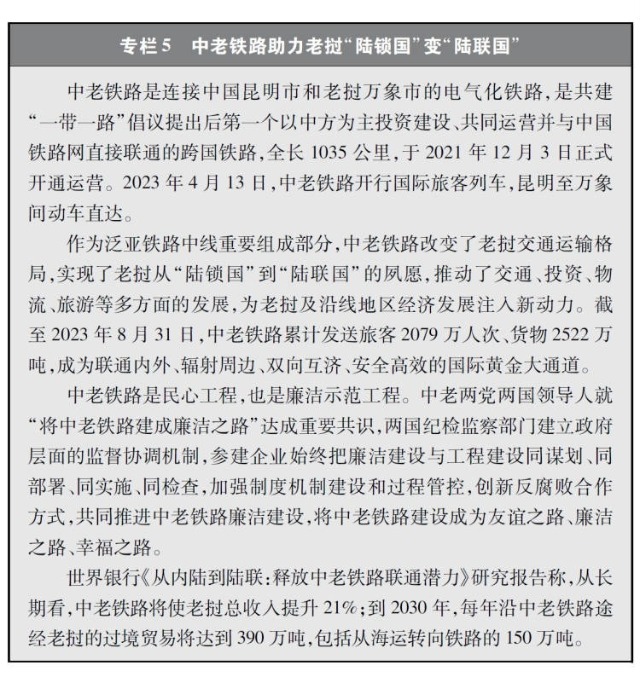經(jīng)濟(jì)走廊和國際通道建設(shè)卓有成效。共建國家共同推進(jìn)國際骨干通道建設(shè),打造連接亞洲各次區(qū)域以及亞歐非之間的基礎(chǔ)設(shè)施網(wǎng)絡(luò)。中巴經(jīng)濟(jì)走廊方向,重點(diǎn)項目穩(wěn)步推進(jìn),白沙瓦-卡拉奇高速公路(蘇庫爾至木爾坦段)、喀喇昆侖公路二期(赫韋利揚(yáng)-塔科特段)、拉合爾軌道交通橙線項目竣工通車,薩希瓦爾、卡西姆港、塔爾、胡布等電站保持安全穩(wěn)定運(yùn)營,默拉直流輸電項目投入商業(yè)運(yùn)營,卡洛特水電站并網(wǎng)發(fā)電,拉沙卡伊特別經(jīng)濟(jì)區(qū)進(jìn)入全面建設(shè)階段。新亞歐大陸橋經(jīng)濟(jì)走廊方向,匈塞鐵路塞爾維亞貝爾格萊德-諾維薩德段于2022年3月開通運(yùn)營,匈牙利布達(dá)佩斯-克萊比奧段啟動軌道鋪設(shè)工作;克羅地亞佩列沙茨跨海大橋迎來通車一周年;雙西公路全線貫通;黑山南北高速公路順利建成并投入運(yùn)營。中國-中南半島經(jīng)濟(jì)走廊方向,中老鐵路全線建成通車且運(yùn)營成效良好,黃金運(yùn)輸通道作用日益彰顯;作為中印尼共建“一帶一路”的旗艦項目,時速350公里的雅萬高鐵開通運(yùn)行;中泰鐵路一期(曼谷-呵叻)簽署線上工程合同,土建工程已開工11個標(biāo)段(其中1個標(biāo)段已完工)。中蒙俄經(jīng)濟(jì)走廊方向,中俄黑河公路橋、同江鐵路橋通車運(yùn)營,中俄東線天然氣管道正式通氣,中蒙俄中線鐵路升級改造和發(fā)展可行性研究正式啟動。中國-中亞-西亞經(jīng)濟(jì)走廊方向,中吉烏公路運(yùn)輸線路實現(xiàn)常態(tài)化運(yùn)行,中國-中亞天然氣管道運(yùn)行穩(wěn)定,哈薩克斯坦北哈州糧油專線與中歐班列并網(wǎng)運(yùn)行。孟中印緬經(jīng)濟(jì)走廊方向,中緬原油和天然氣管道建成投產(chǎn),中緬鐵路木姐-曼德勒鐵路完成可行性研究,曼德勒-皎漂鐵路啟動可行性研究,中孟友誼大橋、多哈扎里至科克斯巴扎爾鐵路等項目建設(shè)取得積極進(jìn)展。在非洲,蒙內(nèi)鐵路、亞吉鐵路等先后通車運(yùn)營,成為拉動?xùn)|非乃至整個非洲國家縱深發(fā)展的重要通道。