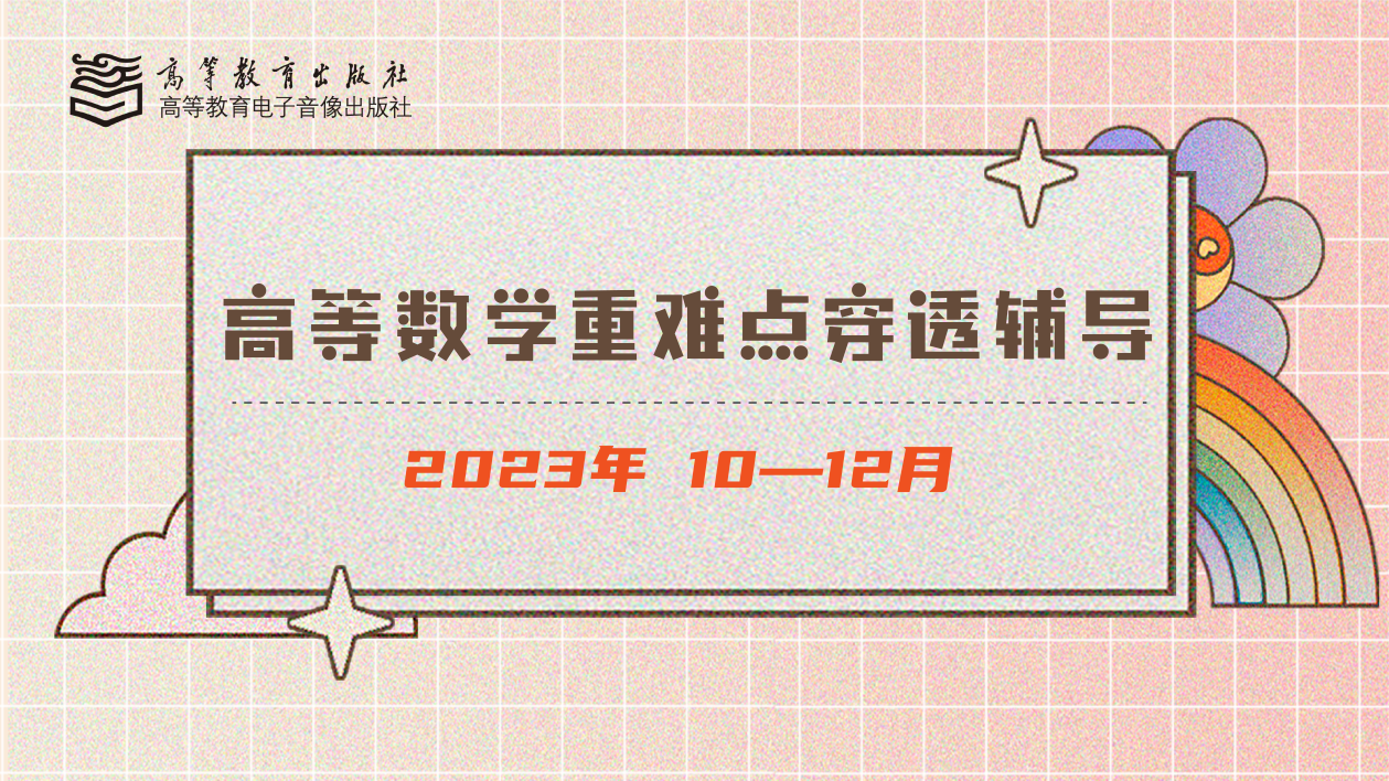 中國教育新聞網(wǎng)訊(記者 焦小新)金秋十月,為了幫助大學(xué)生夯實(shí)高數(shù)基礎(chǔ)的同時拓展高數(shù)思維,并助力有考研需求的同學(xué)們快速突破高數(shù)重難點(diǎn)題型,高等教育出版社計劃從2023年10月16日至2023年12月30日推出“高等數(shù)學(xué)重難點(diǎn)穿透輔導(dǎo)”系列課程,共設(shè)置12場直播。