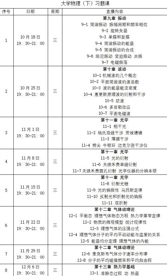 中國(guó)教育新聞網(wǎng)訊(記者 焦小新)為了幫助大學(xué)生同步學(xué)習(xí)物理學(xué)知識(shí)、掌握解題技巧、真正提高物理能力,高等教育出版社計(jì)劃從2023年10月18日起直至2024年1月3日開設(shè)大學(xué)物理(下)習(xí)題課,共設(shè)置16場(chǎng)直播。