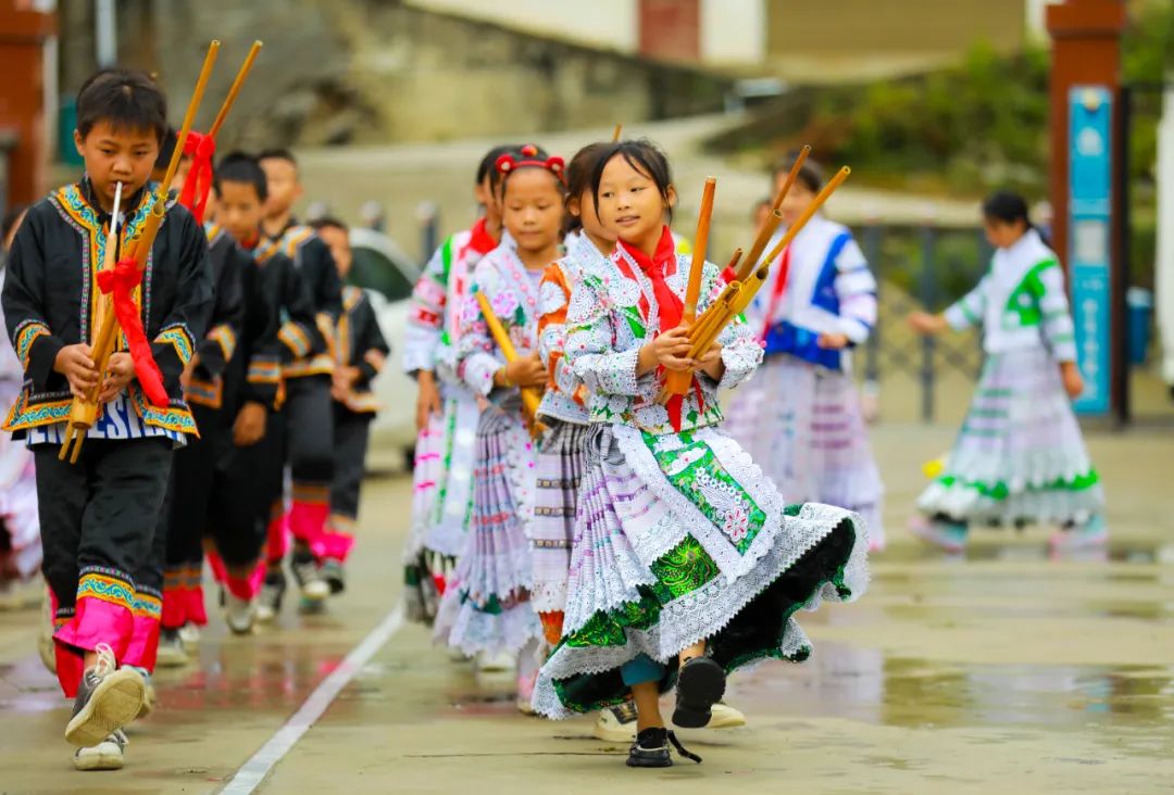 9月22日,貴州省黔西市新仁苗族鄉(xiāng)折溪小學(xué)的小學(xué)生在練習(xí)蘆笙舞。通訊員 周訓(xùn)超 攝