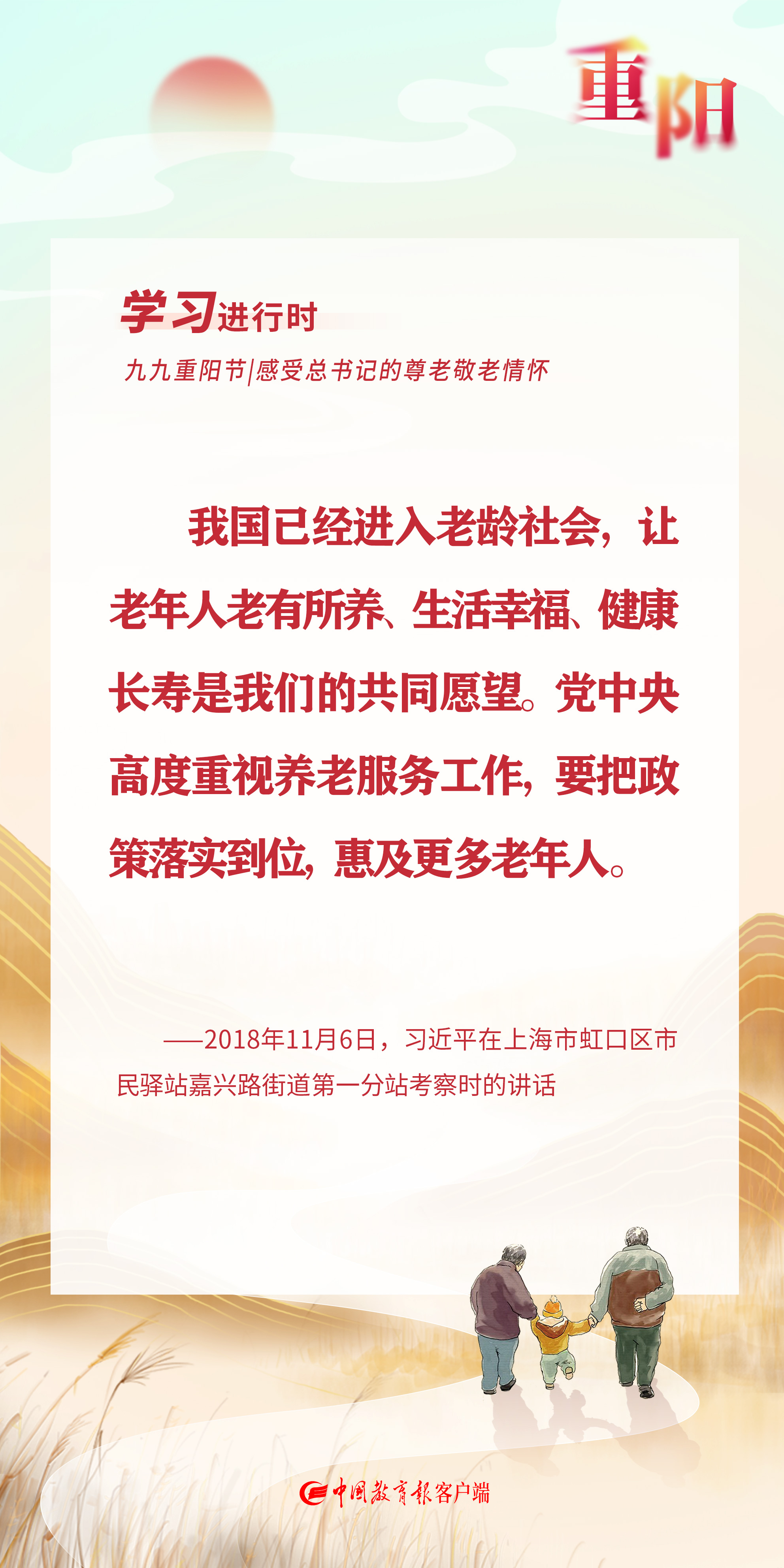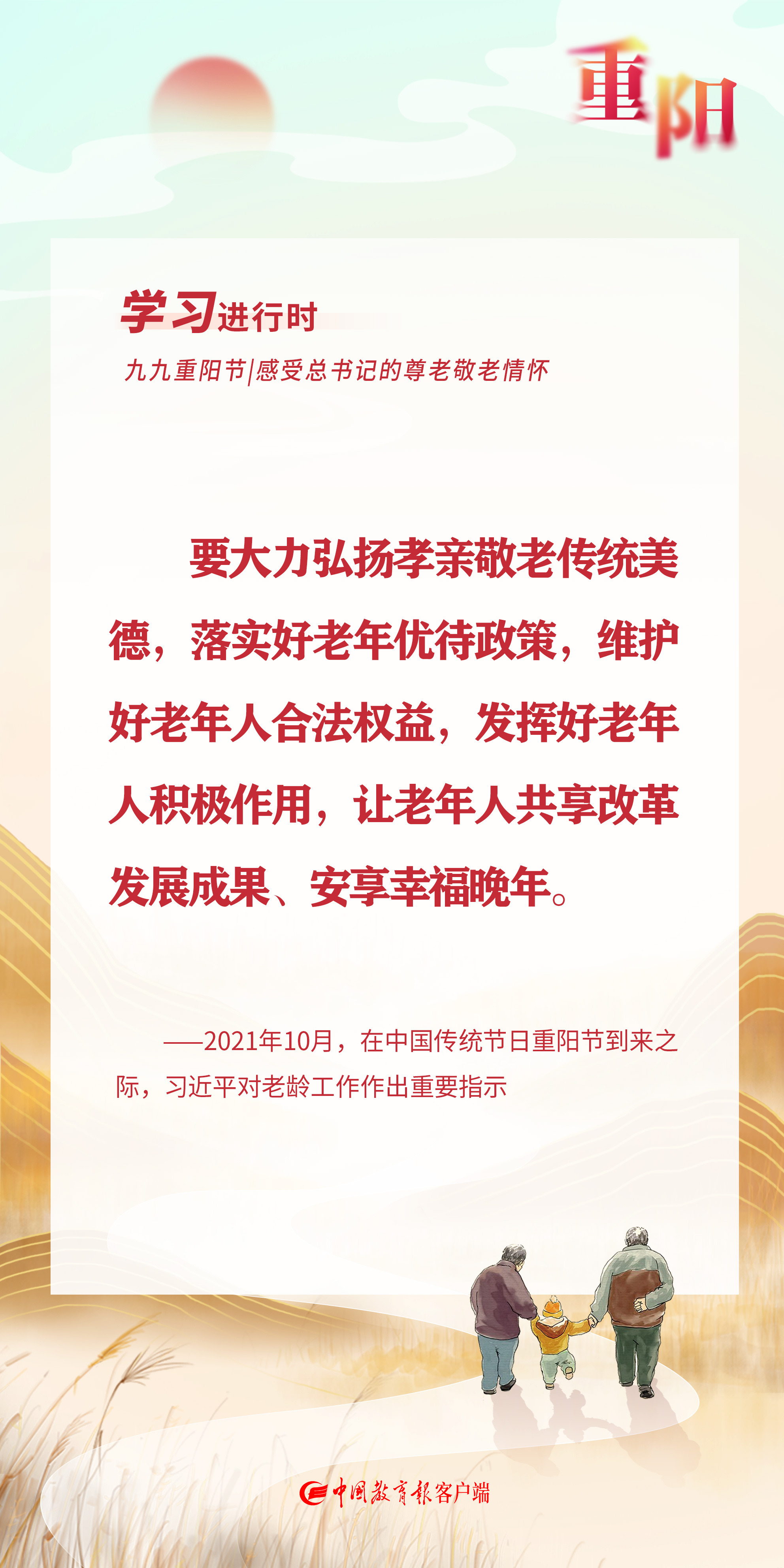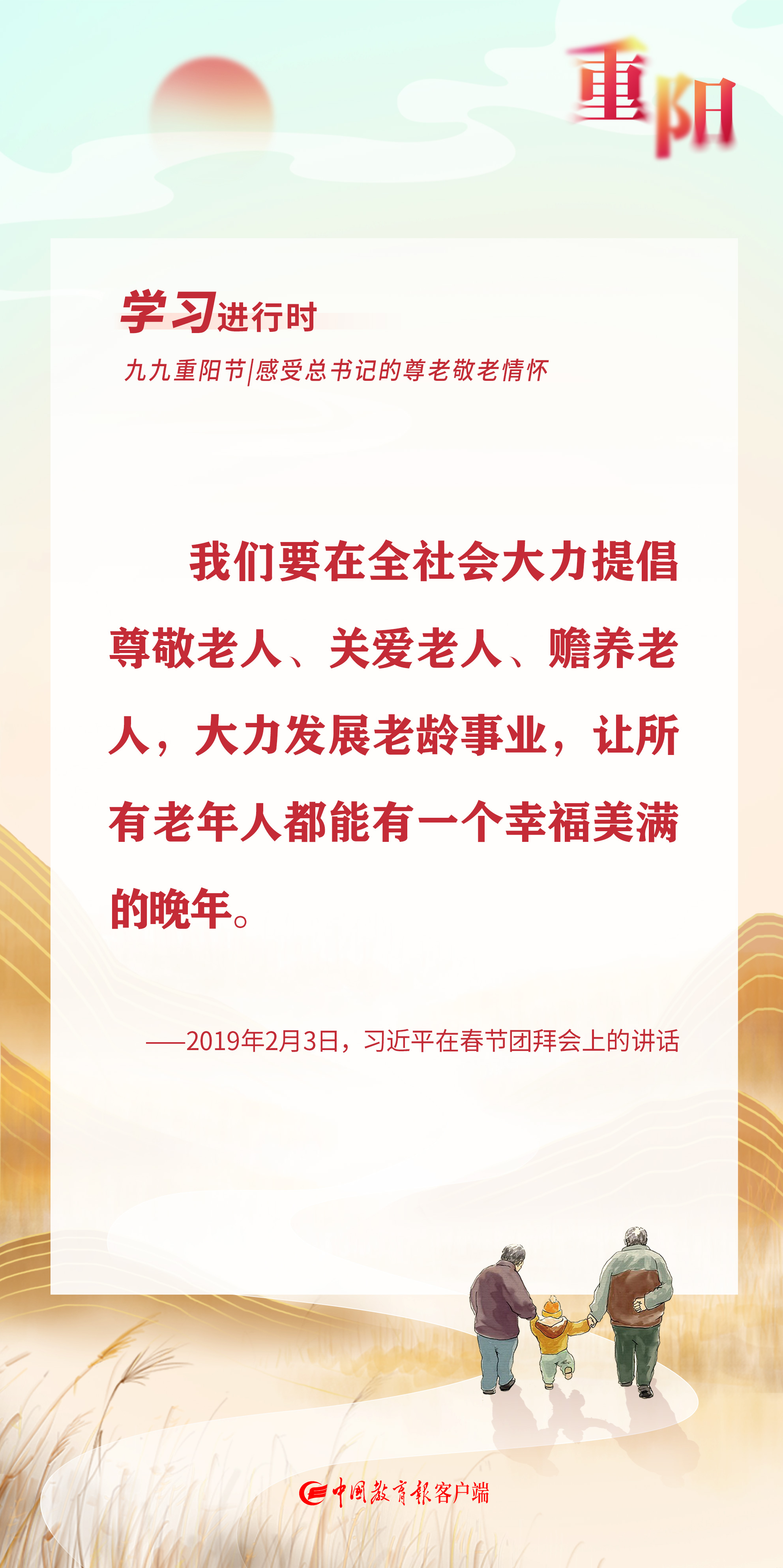 習(xí)近平總書記歷來十分關(guān)心老年人,重視老齡工作,在多個場合作出重要論述,親身踐行尊老愛老優(yōu)良傳統(tǒng),引領(lǐng)全社會形成良好風(fēng)尚。今天是重陽節(jié),讓我們一起重溫習(xí)近平總書記的暖心話語,祝福天下老年人健康長壽。