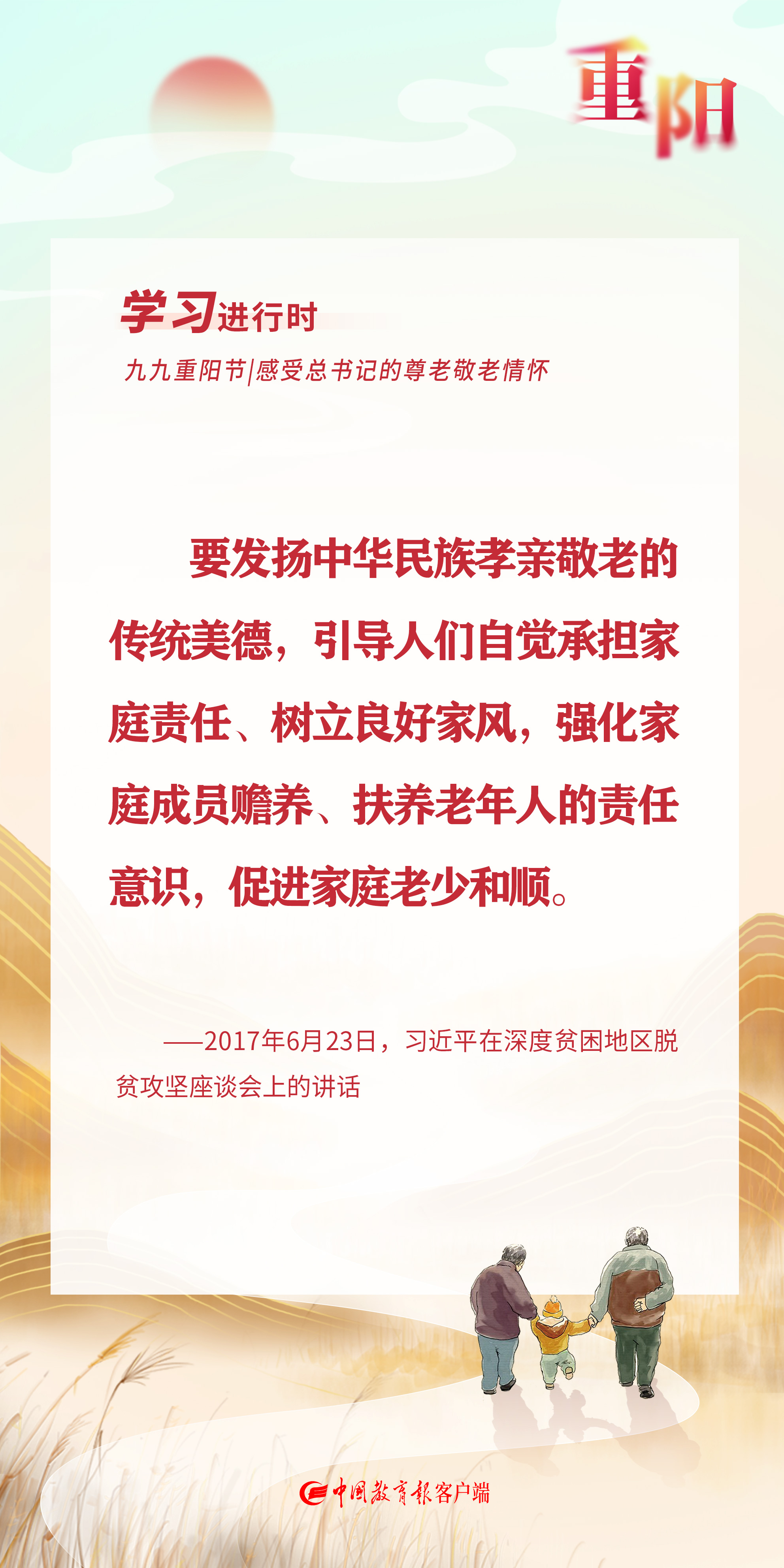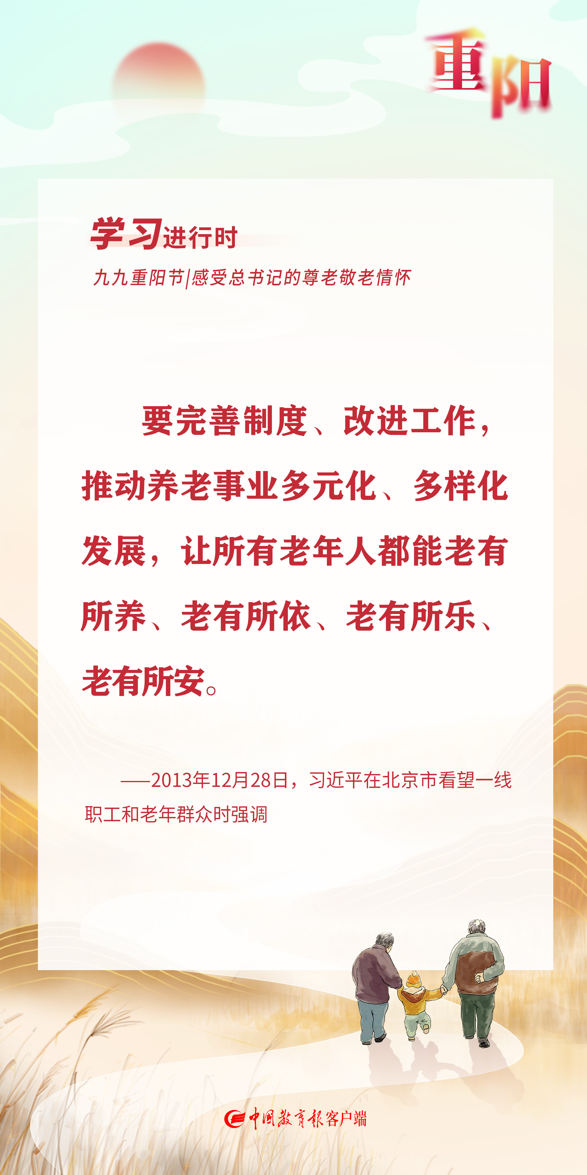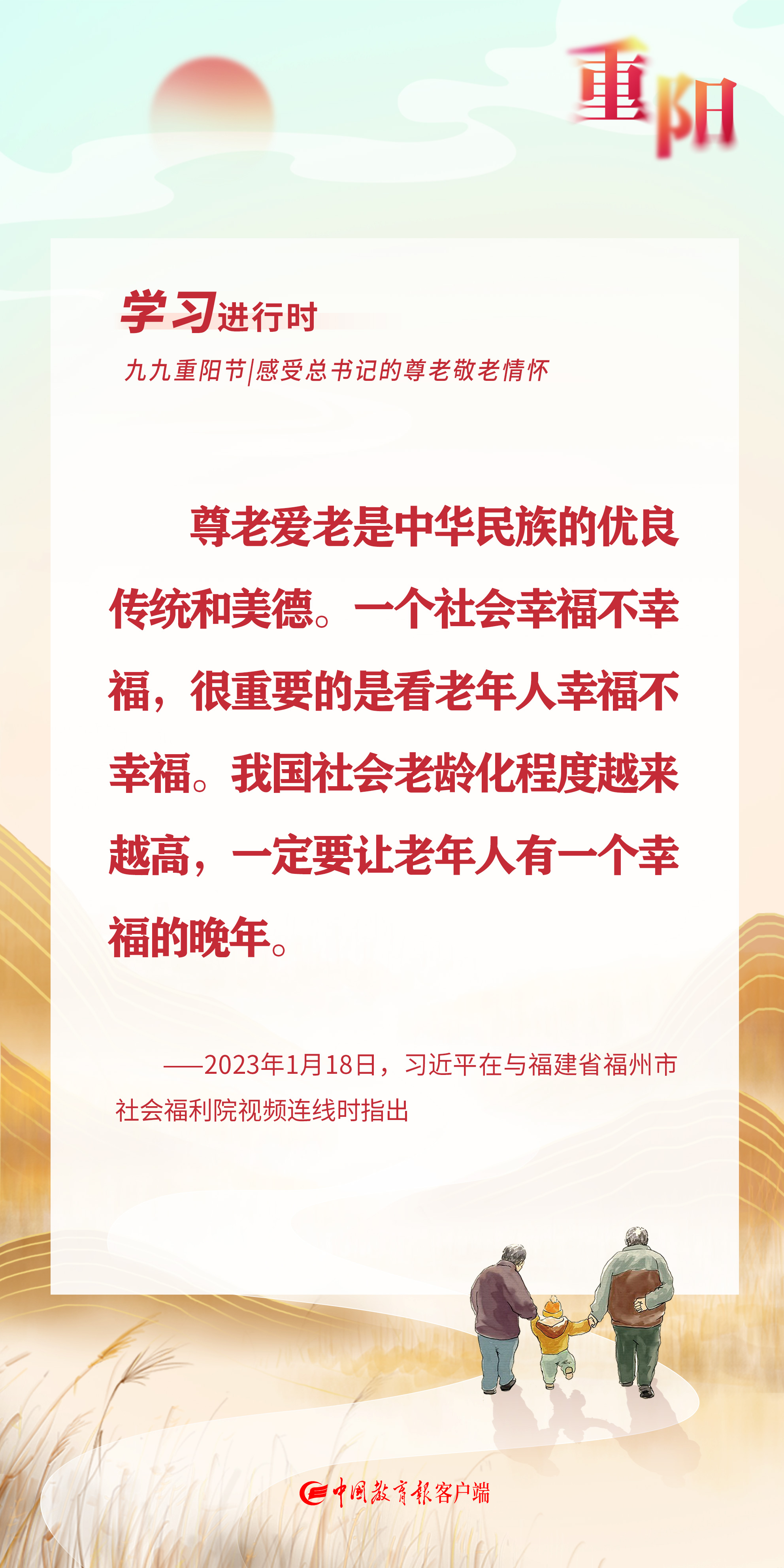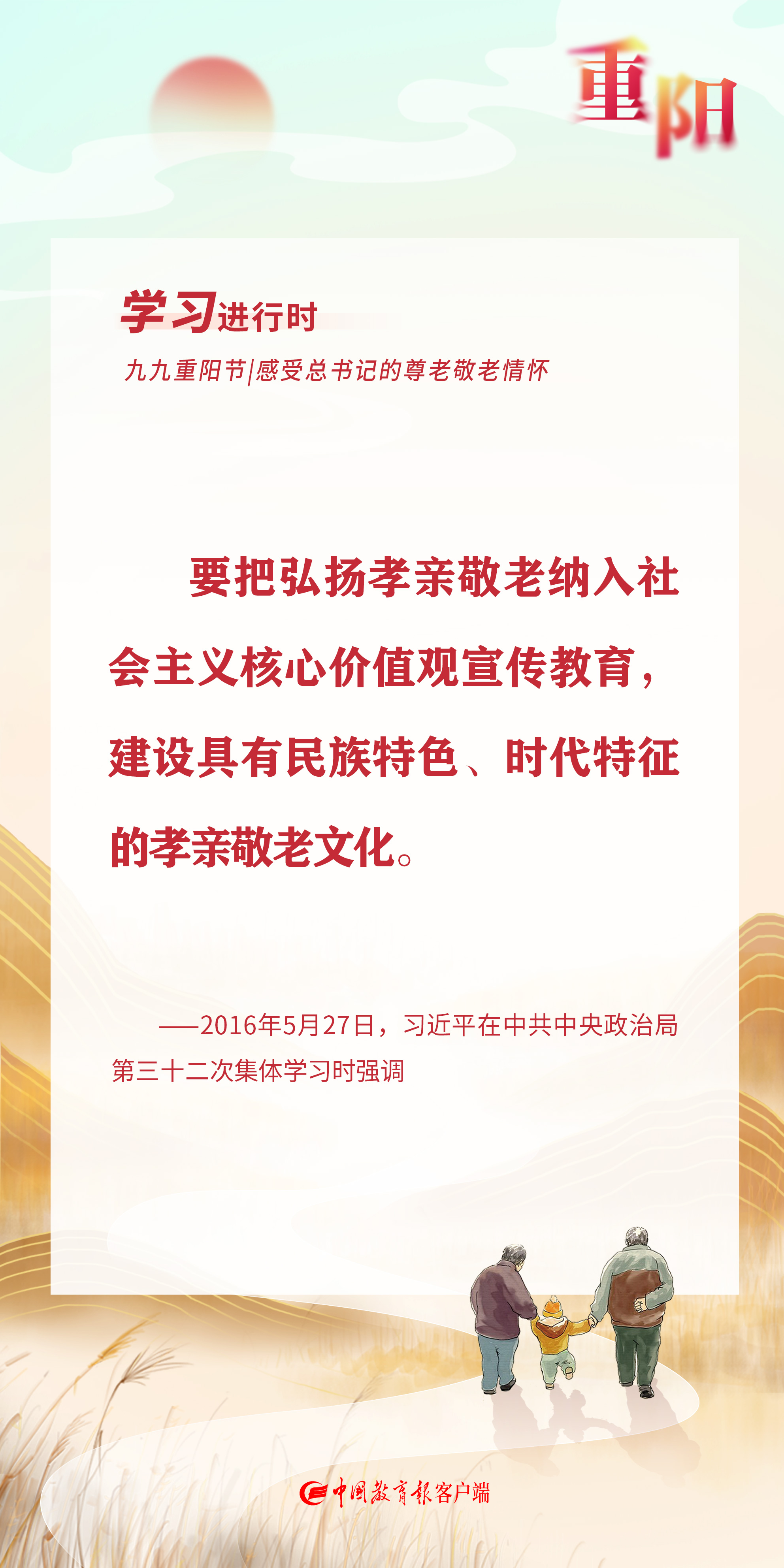 習(xí)近平總書記歷來十分關(guān)心老年人,重視老齡工作,在多個場合作出重要論述,親身踐行尊老愛老優(yōu)良傳統(tǒng),引領(lǐng)全社會形成良好風(fēng)尚。今天是重陽節(jié),讓我們一起重溫習(xí)近平總書記的暖心話語,祝福天下老年人健康長壽。