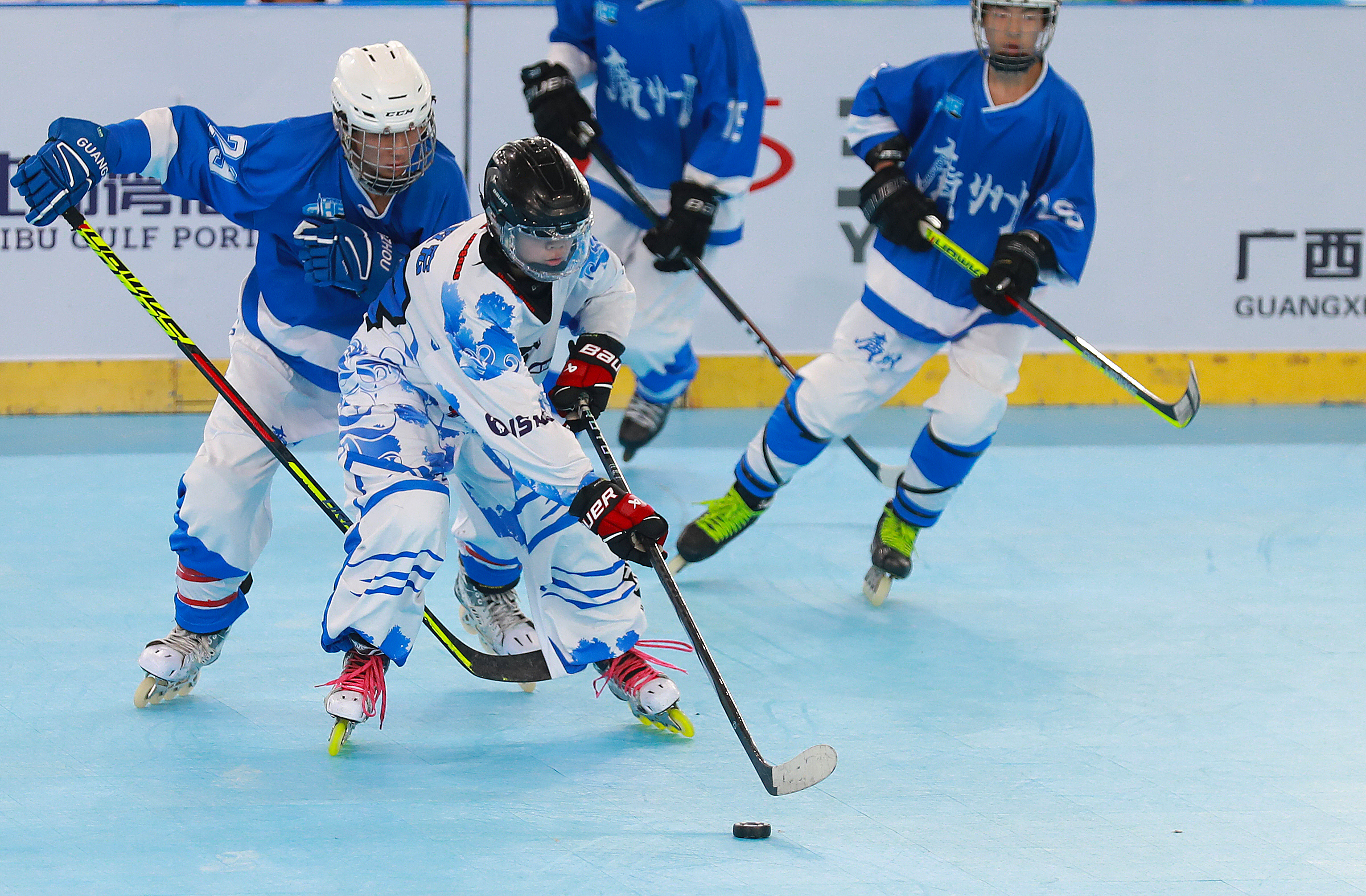 11月10日,第一屆學(xué)青會(huì)(公開(kāi)組)輪滑項(xiàng)目男子輪滑球決賽在南寧進(jìn)行,廣東廣州市隊(duì)3比0戰(zhàn)勝上海黃浦區(qū)隊(duì)獲得男子輪滑球冠軍。