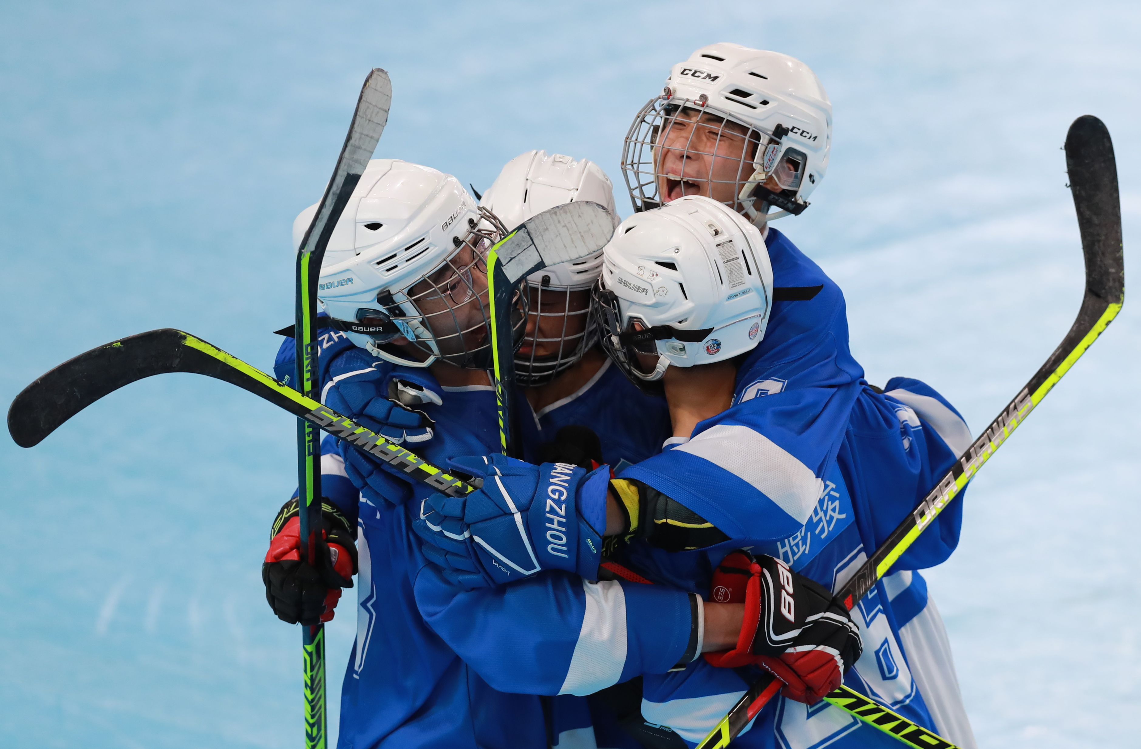 我們贏啦 11月10日,第一屆學(xué)青會(huì)(公開(kāi)組)輪滑項(xiàng)目男子輪滑球決賽在南寧進(jìn)行,廣東廣州市隊(duì)3比0戰(zhàn)勝上海黃浦區(qū)隊(duì)獲得男子輪滑球冠軍。隊(duì)員們?cè)趹c祝勝利。