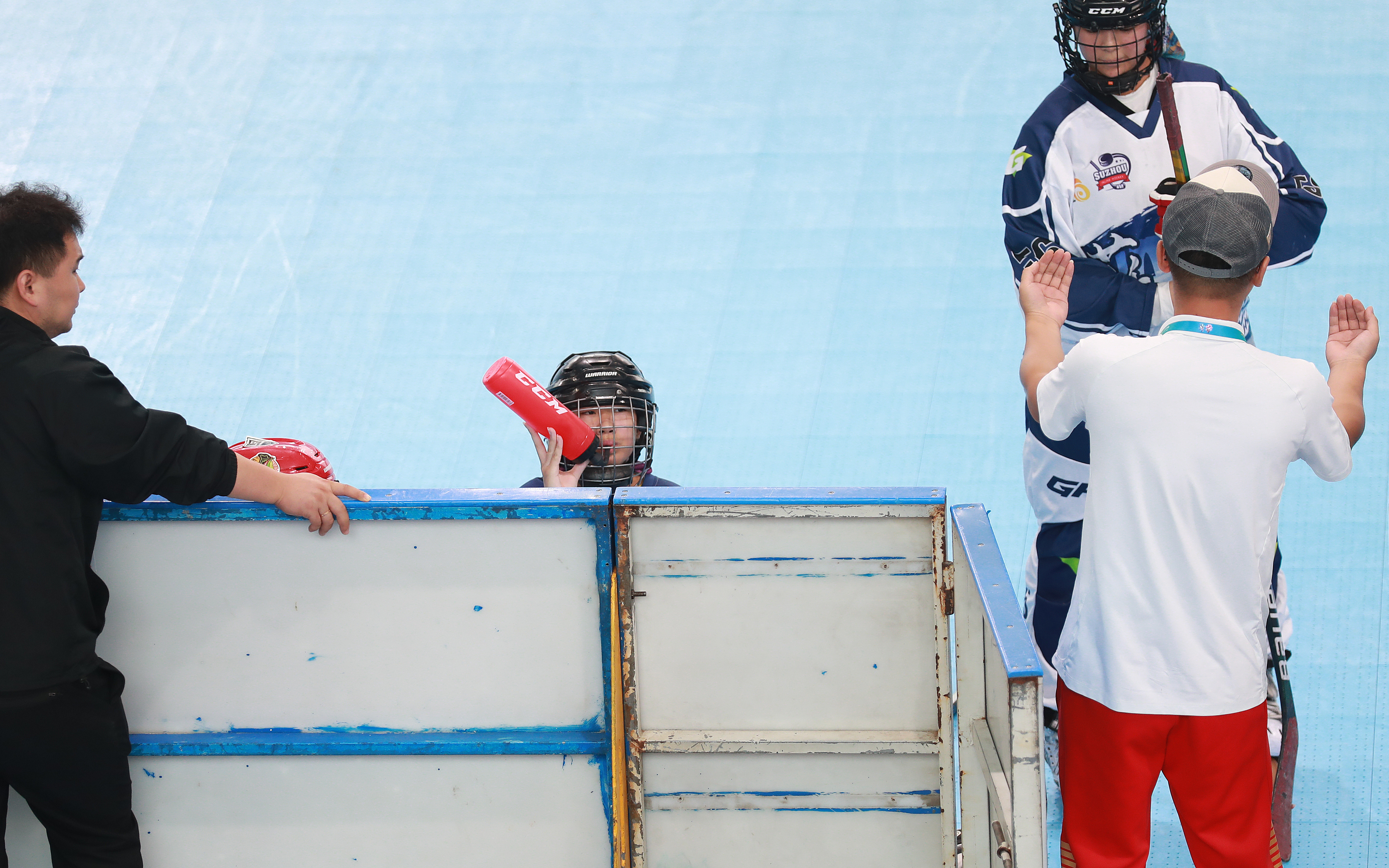 11月10日,第一屆學(xué)青會(huì)(公開(kāi)組)輪滑項(xiàng)目男子輪滑球決賽在南寧進(jìn)行。中場(chǎng)休息。