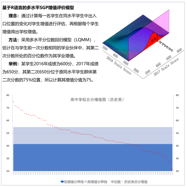 迭代評(píng)價(jià)模型。長沙市遵循增值評(píng)價(jià)、過程評(píng)價(jià)等理念,先后探索并運(yùn)用了K均值聚類、多元回歸、多層線性、多水平SGP等增值評(píng)價(jià)模型,精準(zhǔn)量化學(xué)生學(xué)業(yè)成長、教師教學(xué)效能、學(xué)校發(fā)展增量,追蹤學(xué)校從起始年級(jí)到畢業(yè)年級(jí)學(xué)業(yè)質(zhì)量的增值變化,突出考查學(xué)校教師對(duì)學(xué)生學(xué)業(yè)進(jìn)步和能力提升影響的凈效應(yīng)(見圖2)。以進(jìn)步幅度衡量學(xué)校辦學(xué)質(zhì)量的增值評(píng)價(jià)方式,切實(shí)解決因起點(diǎn)不同帶來評(píng)價(jià)不公的難題,打破了單一、靜態(tài)的終結(jié)性評(píng)價(jià)困局。