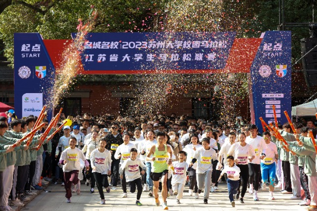 中國教育報-中國教育新聞網(wǎng)訊(通訊員 胡植然)11月25日,由江蘇省教育廳、蘇州市體育局、蘇州市體育總會指導(dǎo),由蘇州大學(xué)與江蘇省學(xué)生體育協(xié)會聯(lián)合主辦的“名城名?!?023蘇州大學(xué)馬拉松暨江蘇省大學(xué)生馬拉松聯(lián)賽在蘇州大學(xué)天賜莊校區(qū)開跑。