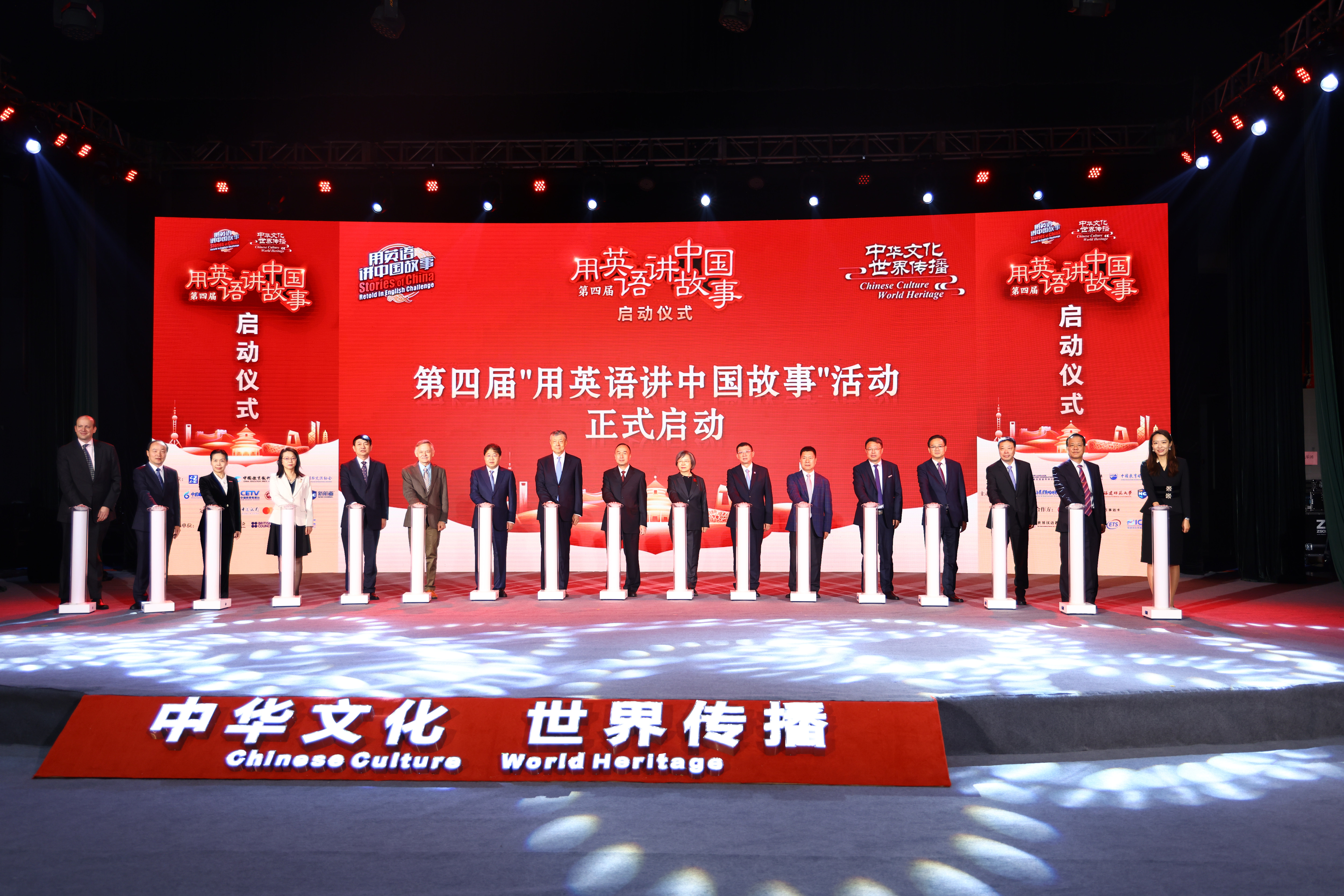 活動(dòng)當(dāng)天,“用英語(yǔ)講中國(guó)故事”活動(dòng)主辦方、指導(dǎo)單位、協(xié)辦單位等機(jī)構(gòu)的代表在現(xiàn)場(chǎng)共同按下活動(dòng)啟動(dòng)儀式按鈕,表達(dá)對(duì)新一屆活動(dòng)的期待和祝愿。