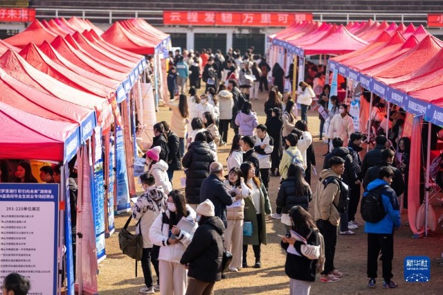 2023年12月1日,湖南省2024屆高校畢業(yè)生就業(yè)專(zhuān)場(chǎng)招聘會(huì)在湖南師范大學(xué)體育場(chǎng)舉辦,吸引全國(guó)300余家用人單位,數(shù)千名學(xué)生參與。新華社記者 陳思汗 攝