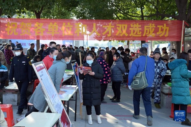 2023年2月15日,安徽省合肥市包河區(qū)在轄區(qū)內(nèi)常青街道凌大塘臨工集散中心舉行春風(fēng)行動(dòng)暨“臨工就業(yè)”專(zhuān)場(chǎng)招聘會(huì)。這是求職者在招聘會(huì)上了解崗位信息。新華社記者 周牧 攝