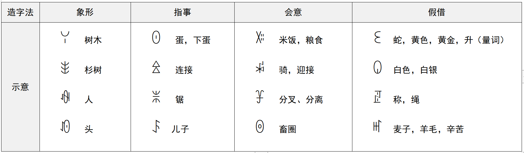 表1 彝文造字示意