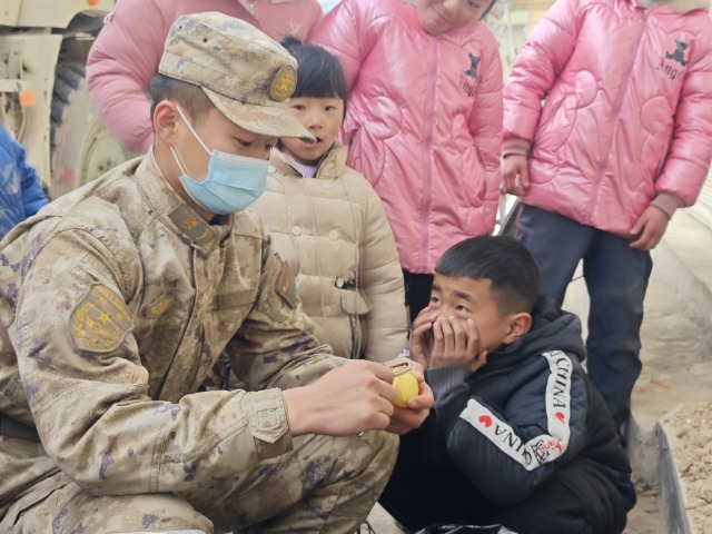 另一邊,輪崗休息的隊(duì)員剛拿起手機(jī)就被幾個(gè)小女孩圍了起來(lái),想要自拍一張。救援隊(duì)員立刻蹲下來(lái),拿著手機(jī)和大家一起自拍。盡管只認(rèn)識(shí)了不到兩天時(shí)間,可心卻在寒冬里緊緊貼在一起……隊(duì)員們除了每天做好保障工作,還會(huì)輪流抽空給聚在廣場(chǎng)上的小朋友講國(guó)防知識(shí),對(duì)他們進(jìn)行愛(ài)國(guó)主義教育。