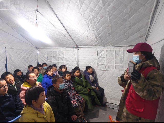 這樣的臨時“帳篷學(xué)?!狈e石山縣共有145個。臨夏州教育局為迅速恢復(fù)災(zāi)后教育教學(xué)秩序,保障每一個受災(zāi)學(xué)生有書讀、有學(xué)上,在全縣145個安置點(diǎn)開設(shè)臨時“帳篷學(xué)?!?,有計劃、有秩序地開展教育教學(xué)工作和形式多樣的教育活動,倡議州、縣市教育局、州直各學(xué)校根據(jù)自身實(shí)際,自愿向積石山縣派駐支教援助團(tuán)。