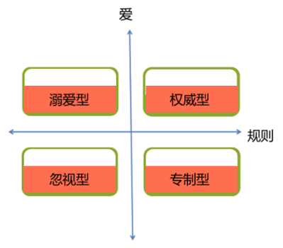 1971年,鮑姆令德提出了教養(yǎng)方式的理論,他指出父母教養(yǎng)方式的兩個(gè)維度:愛和規(guī)則。愛指父母對(duì)孩子接受與愛的程度以及對(duì)其需求的敏感程度;規(guī)則指父母應(yīng)該對(duì)孩子行為建立適當(dāng)?shù)臉?biāo)準(zhǔn),并堅(jiān)持要求孩子達(dá)到這些標(biāo)準(zhǔn)。根據(jù)這兩個(gè)維度,鮑姆令德將父母教養(yǎng)方式分為四種類型。
