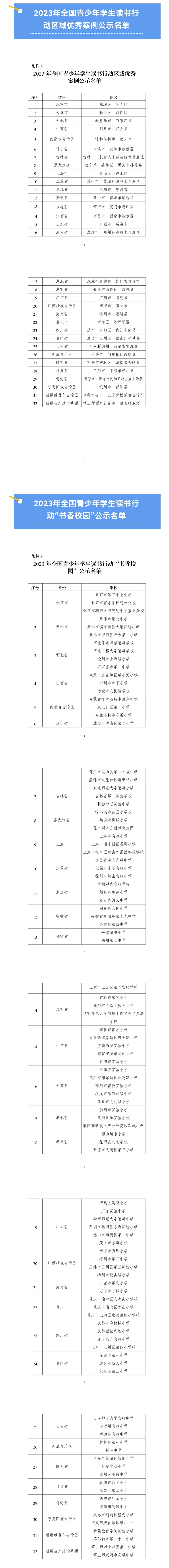 1月2日,教育部公示2023年全國(guó)青少年學(xué)生讀書(shū)行動(dòng)優(yōu)秀案例和“書(shū)香校園”名單,各省級(jí)教育行政部門(mén)共推薦64個(gè)區(qū)域優(yōu)秀案例和99個(gè)“書(shū)香校園”。公示期為2024年1月2日至2024年1月8日。