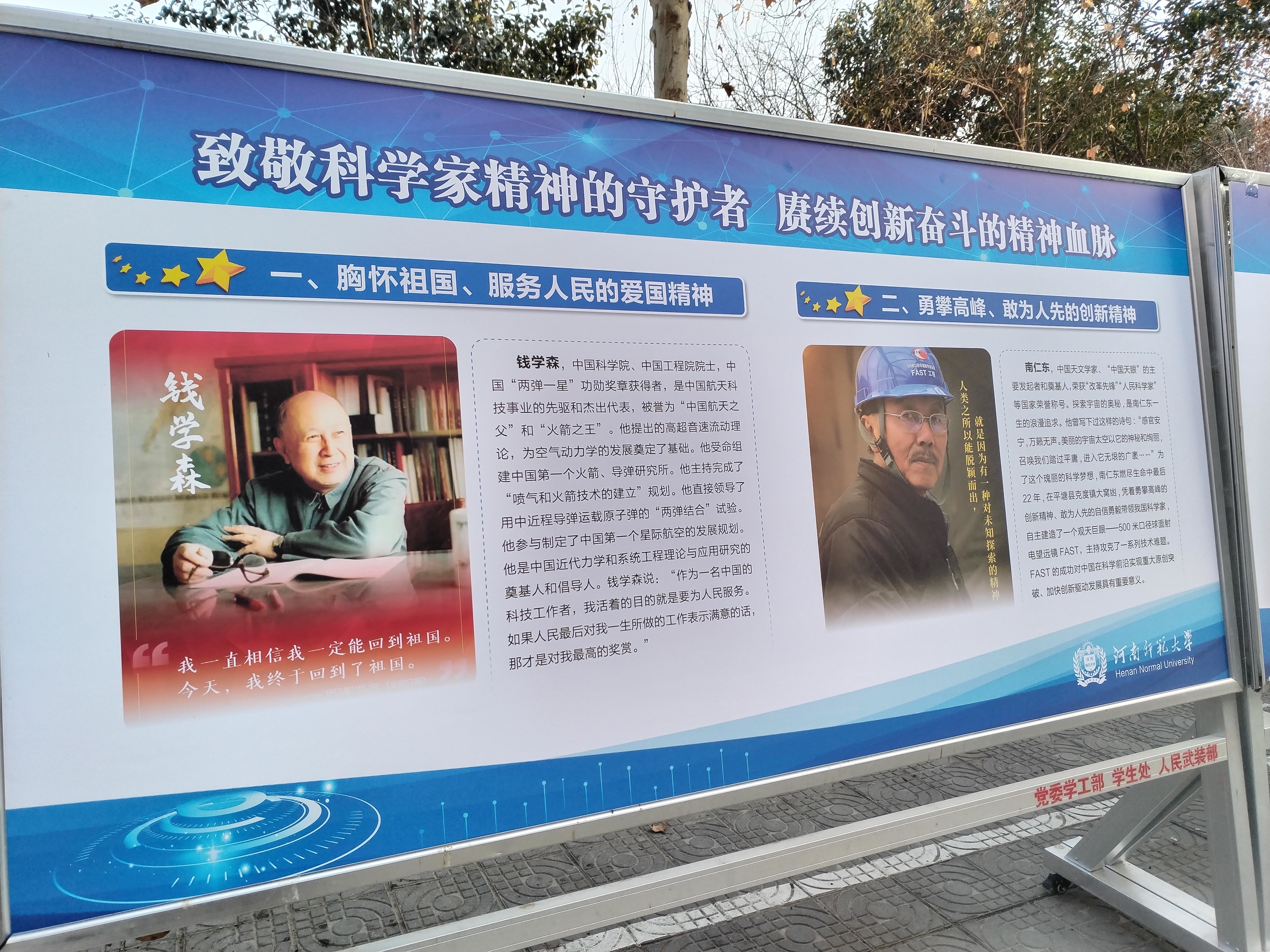 中國教育報-中國教育新聞網(wǎng)訊(通訊員 劉吉磊 陳銳 記者 余闖)“弘揚科學家精神,師大榜樣在行動”“致敬科學家精神的守護者,賡續(xù)創(chuàng)新奮斗的精神血脈”……走進河南師范大學校園,一塊塊緊扣“科學道德與學風建設”主題的系列展板布置在主干道、教學樓附近,路過學子紛紛駐足觀看。
