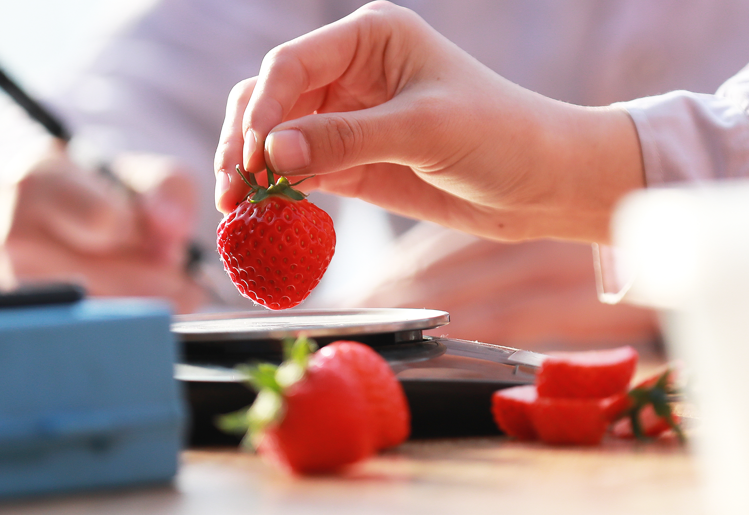1月5日,沈陽(yáng)農(nóng)業(yè)大學(xué)遼寧省草莓育種與優(yōu)質(zhì)栽培重點(diǎn)實(shí)驗(yàn)室,研究生在測(cè)定草莓果實(shí)重量。