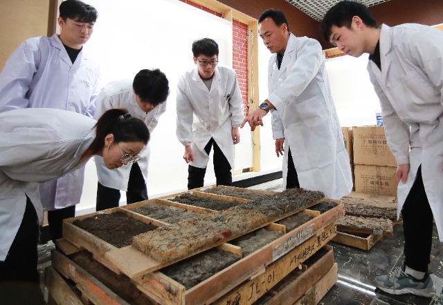 沈陽農(nóng)業(yè)大學農(nóng)業(yè)農(nóng)村部東北耕地保育重點實驗室,鄒洪濤教授(右二)為研究生講授國家第三次土壤普查中診斷標本制作過程。