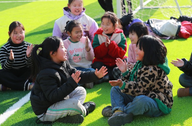“龍年有進步!龍年更優(yōu)秀!龍年要加油!”在孩子們的迎新口號聲中,一場足球賽結(jié)束,他們?nèi)齻€一群、五個一組,或是在草坪上嬉戲笑鬧,或是在跑道上跑步跳繩,操場上充滿了歡聲笑語。