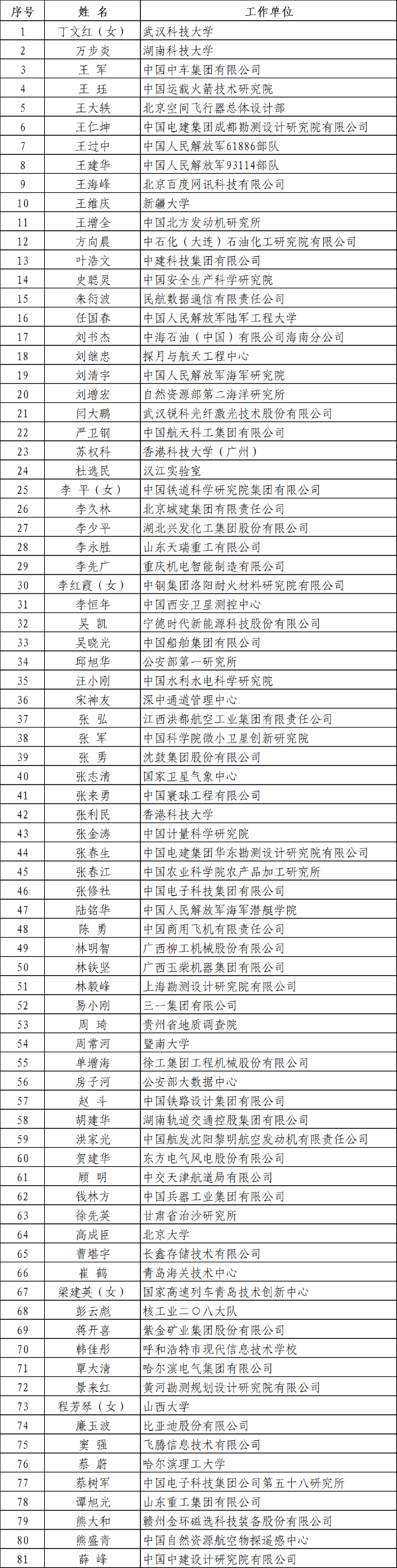 中國(guó)教育新聞網(wǎng)訊(記者 焦小新)1月19日上午,“國(guó)家工程師獎(jiǎng)”表彰大會(huì)在人民大會(huì)堂舉行,81名個(gè)人被授予“國(guó)家卓越工程師”稱號(hào),50個(gè)團(tuán)隊(duì)被授予“國(guó)家卓越工程師團(tuán)隊(duì)”稱號(hào),多所高校的老師和團(tuán)隊(duì)獲獎(jiǎng)。一起來(lái)看表彰對(duì)象名單。