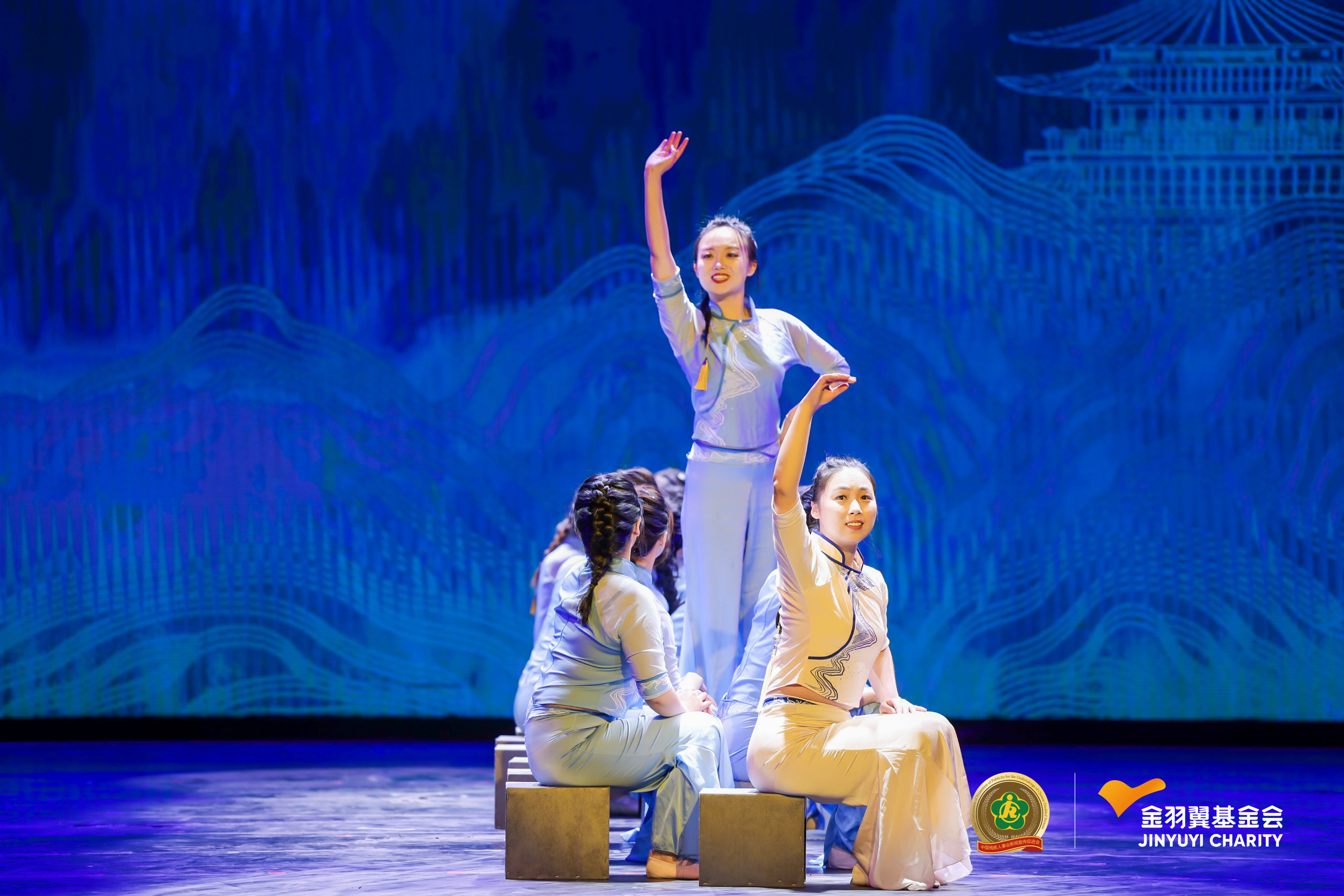 天津理工大學(xué)聾人工學(xué)院學(xué)生的群舞《碇步橋》。