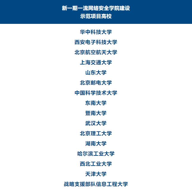 經(jīng)高校申報、專家評審等環(huán)節(jié),2024年1月,中央網(wǎng)信辦、教育部評選產(chǎn)生新一期一流網(wǎng)絡(luò)安全學(xué)院建設(shè)示范項目高校。,跟教育小新一起來看名單——